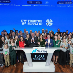 Tractor Supply Company (NASDAQ: TSCO), the largest rural lifestyle retailer in the United States, and National 4-H announced today that their 15-year partnership has raised more than $25 million, empowering youth in local communities through 4-H programs nationwide. To celebrate the milestone, leaders from both organizations gathered on Monday to ring the Nasdaq opening bell in New York. Thirty 4-H members and young alumni from eight states also attended the event, representing the six million youth 4-H serves each year.